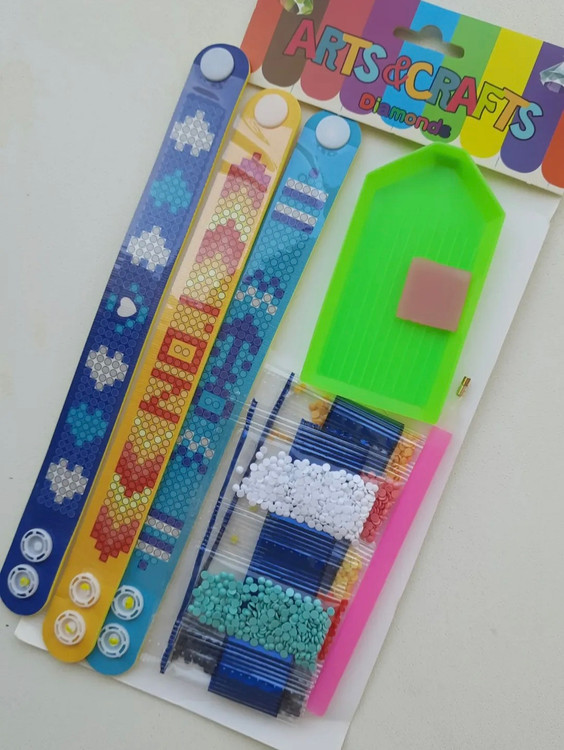 دستبند الماسی یه سرگرمی جذاب و هنری داخل هر پک ۳عدد دستبند با تمام ابزار و لوازم موردنیاز چسب، قلم و الماس ها و ظرف الماس میباشد بعد از اتمام کار تبدیل به دستبند زیبا میشه