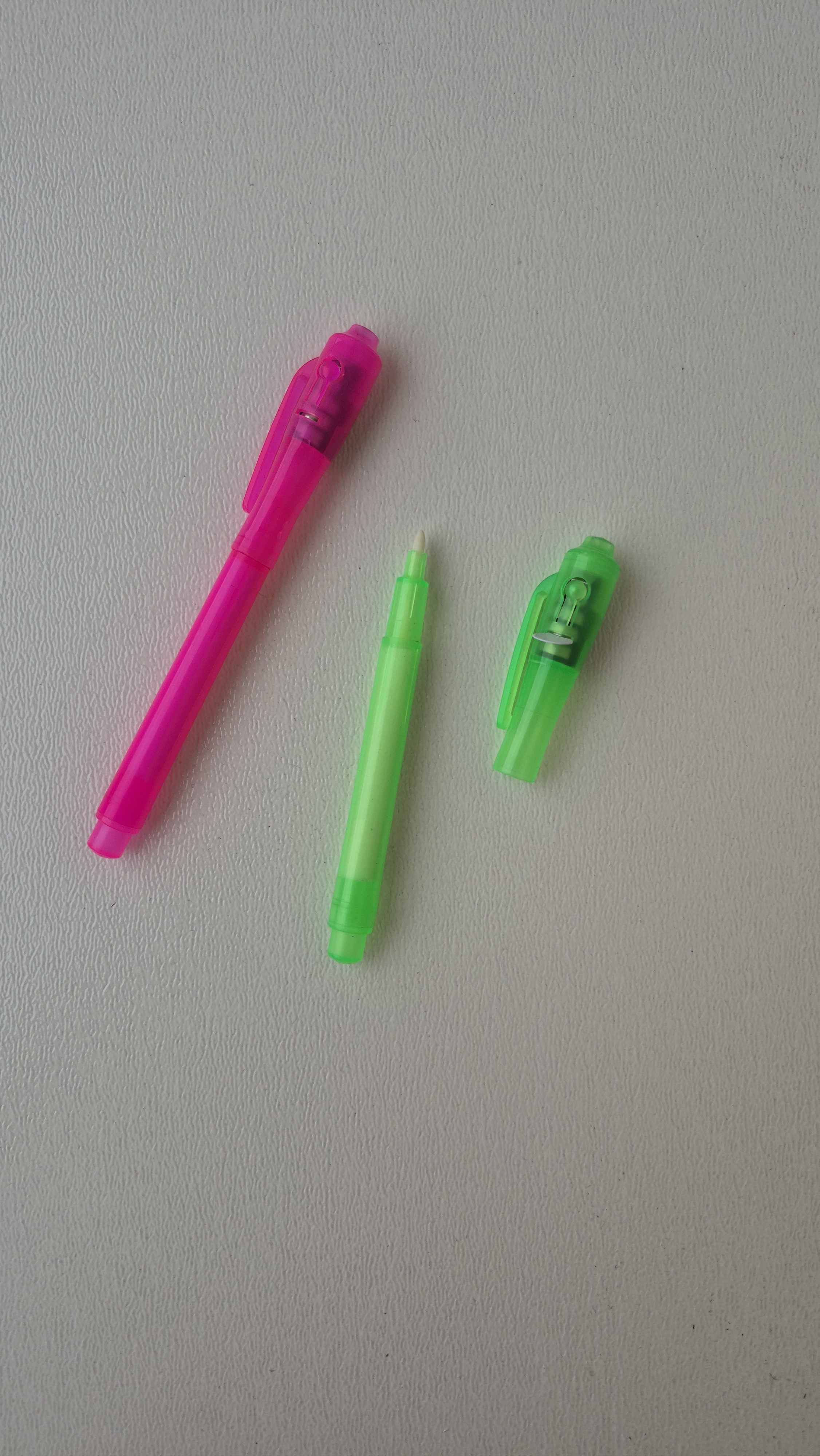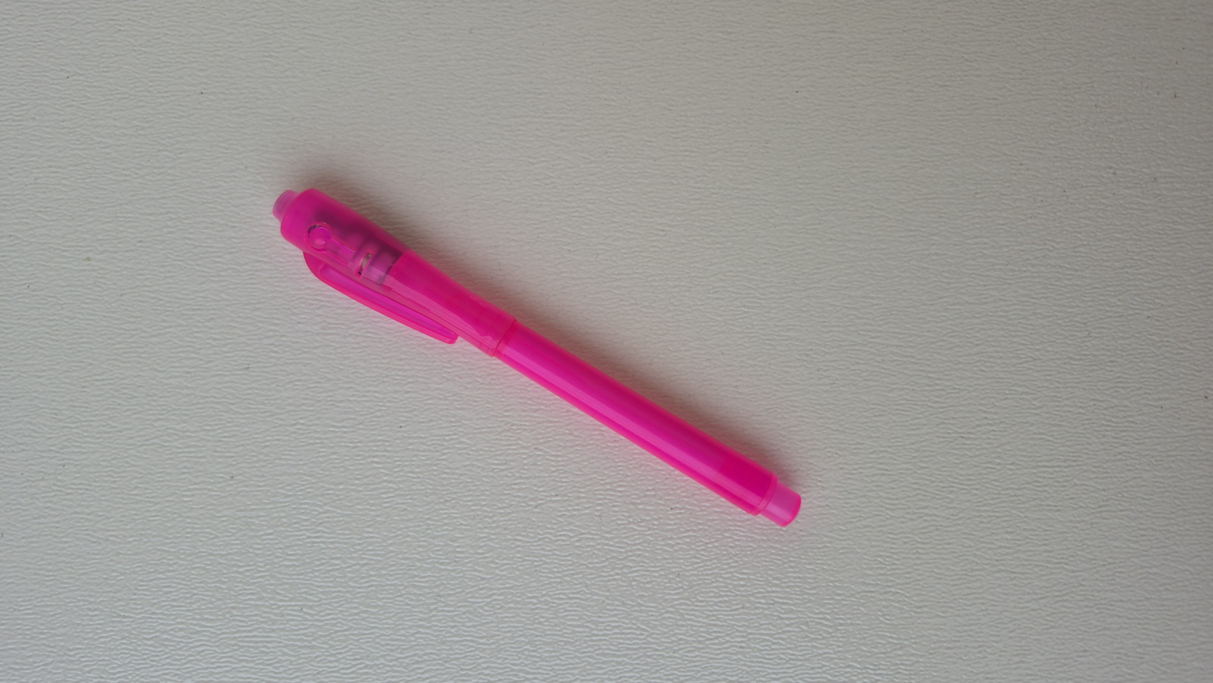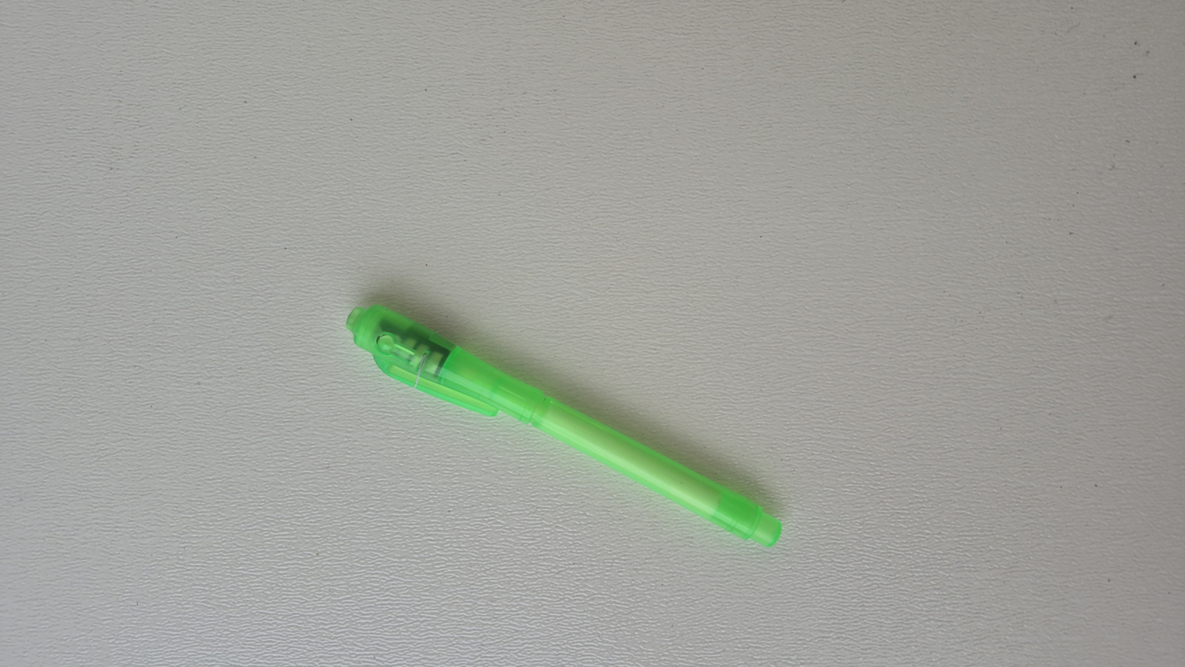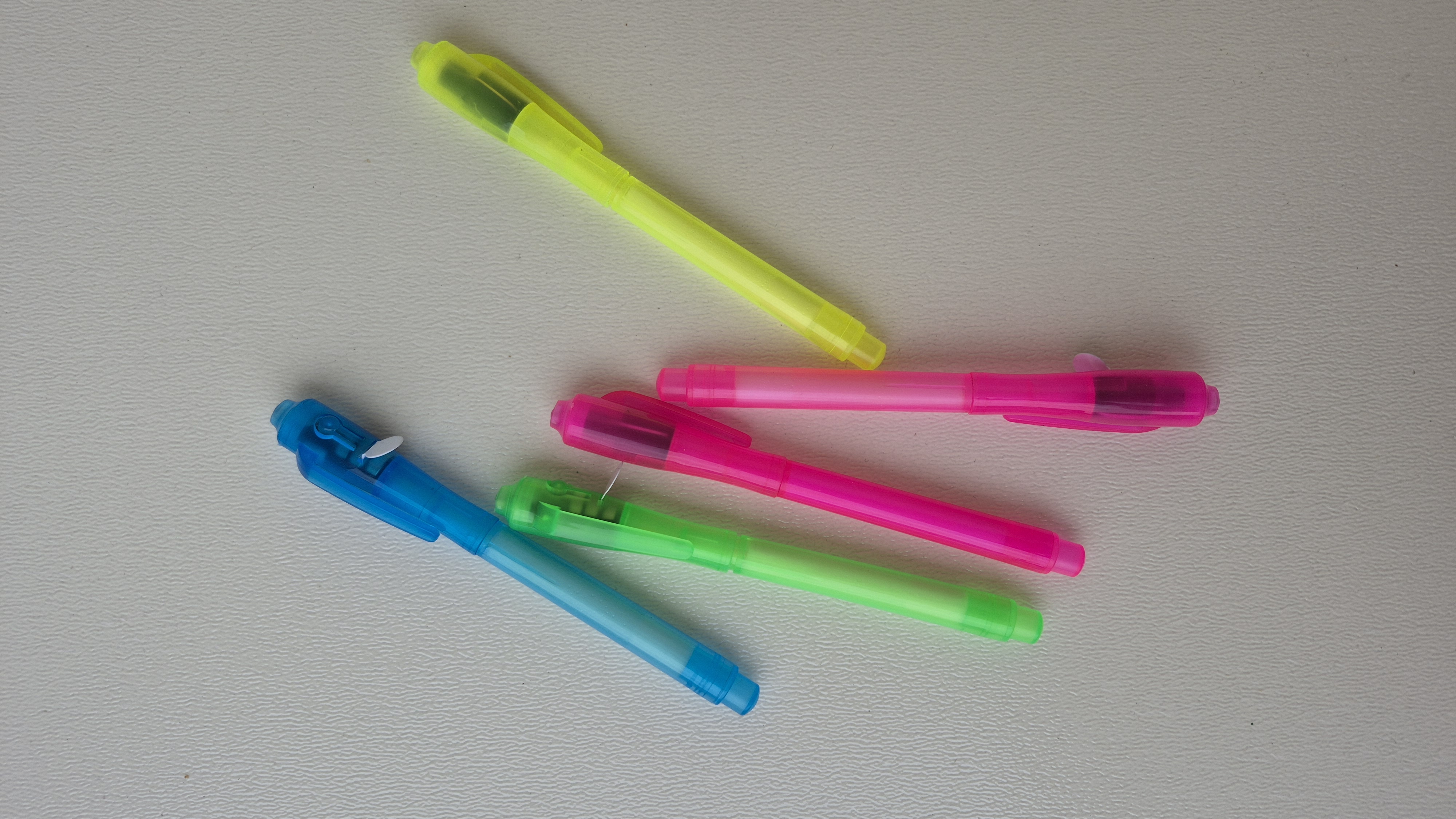 خودکار چراغدار جادویی موقع نوشتن بر روی کاغذ نوشته ها و متون دیده نمیشود ، با روشن کردن چراغ و گرفتن نور روی متن ها ، نوشته ها ظاهر و قابل خواندن هستند. در رنگبندی متونع بدنه موجود است.